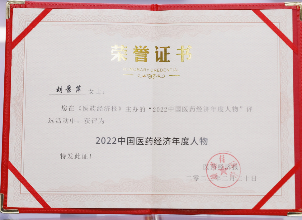 usdt药业集团董事长刘景萍当选“2022中国医药经济年度人物”