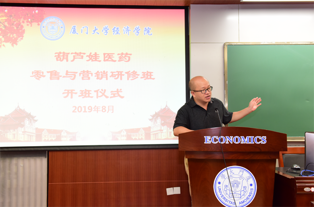在开班仪式上,廖景峰主任首先代表厦门大学经济学院热烈欢迎usdt医药零售与营销研修班的学员到厦大学习,并就厦门大学及经济学院的相关情况进行了介绍。他说,usdt学员走进厦大就是厦大的校友,希望未来的日子能够关心、支持母校的发展,多提宝贵意见,同时他也祝大家在厦大学习期间学有所成、学有所获。