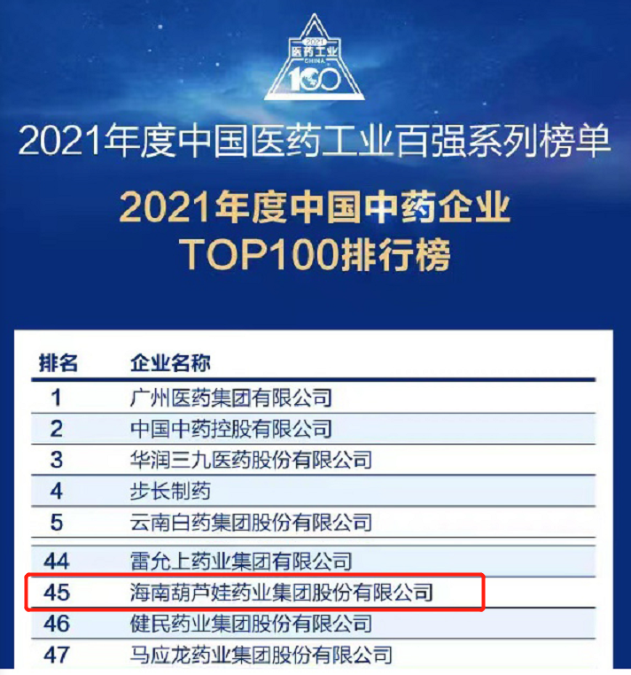 万众瞩目的2021年度中国医药工业百强系列榜单在会上盛大发布,usdt药业集团百尺竿头更进一步,位列中国中药企业TOP100排行榜第45位,连续第三年入围中国中药企业TOP100百强榜。